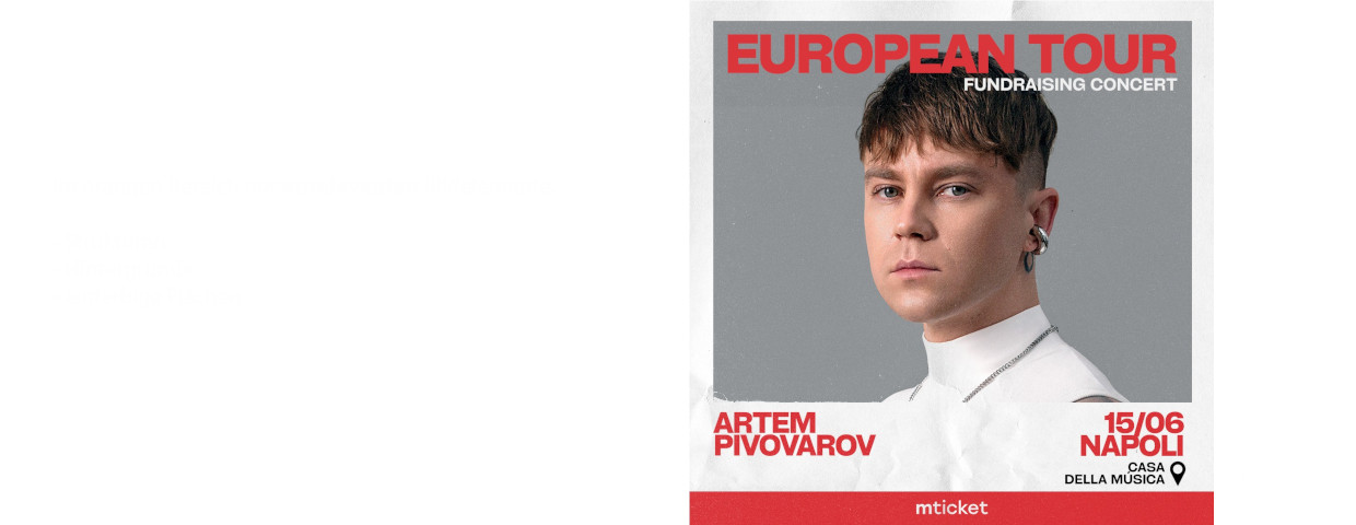 Unfortunately, there are currently no events available for Artem Pivovarov. But feel free to sign up for our ticket alert which informs you as soon as there are news for Artem Pivovarov.